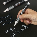 得力单头白色记号笔 油性笔 墨水不可擦深色表面书写标记